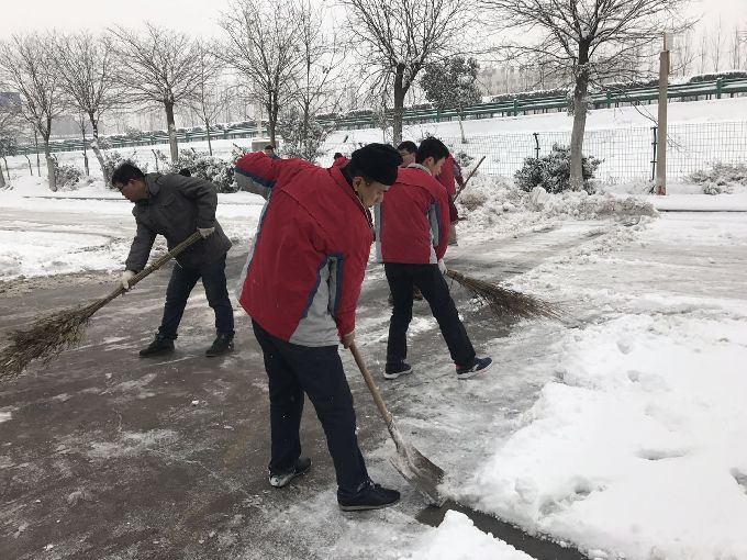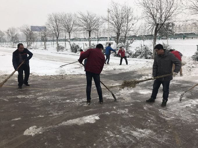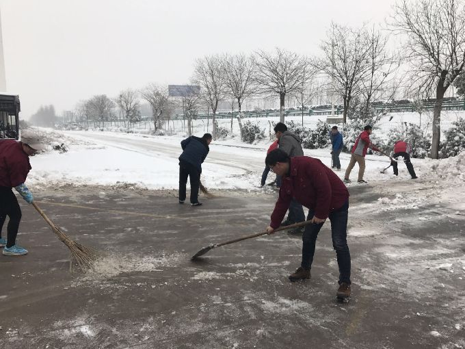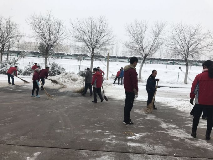 1月4日早上,各部门员工不约而同纷纷下楼进行扫雪。由于条件的限制,除雪工具只有铁锨、扫帚加上零下的低温,使除雪工作更加艰难,大家的手和脸都冻得通红。然而,这一切丝毫没有影响员工们的热情和工作效率,各部门员工团结协作,伴随着凛冽的寒风,奋战在扫雪一线。经过两个小时的奋战,公司门口和内部道路积雪全部及时清扫干净,为公司员工出行开辟了一条洋溢着温情的通畅方便之路。